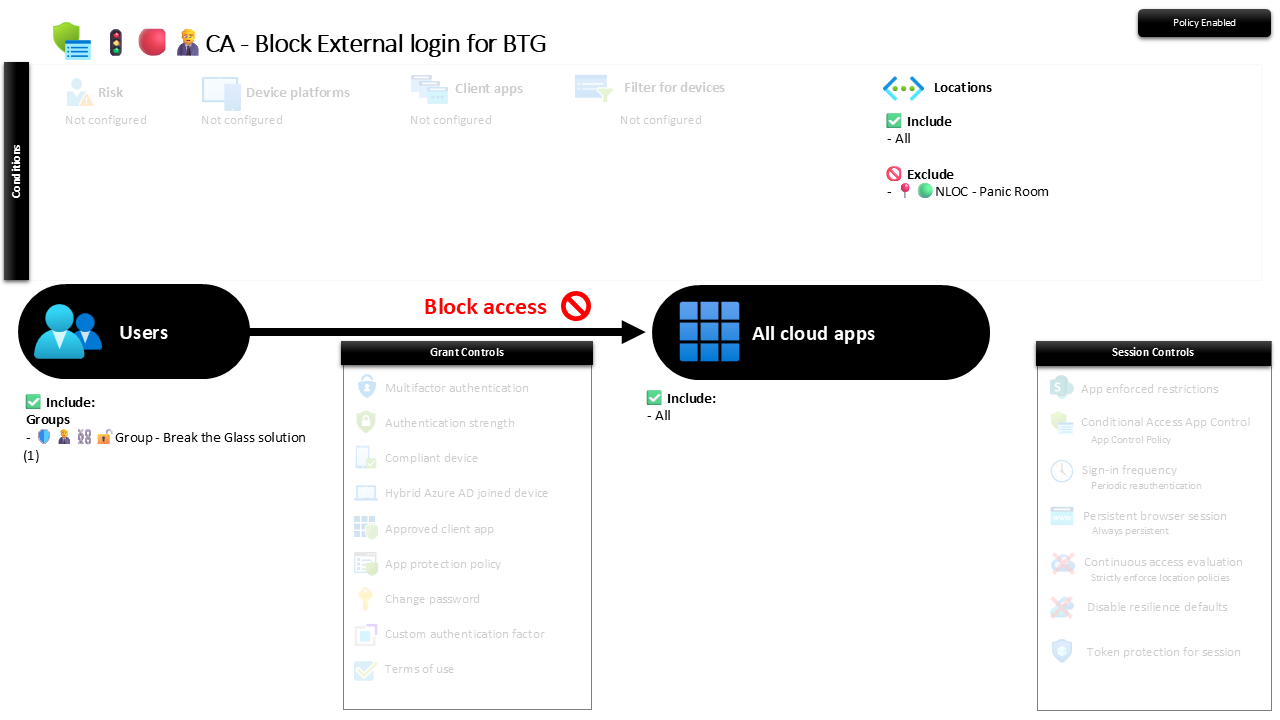 This Conditional Access policy is built to block everything for Break-the-Glass (BTG) accounts β except from one safe place.