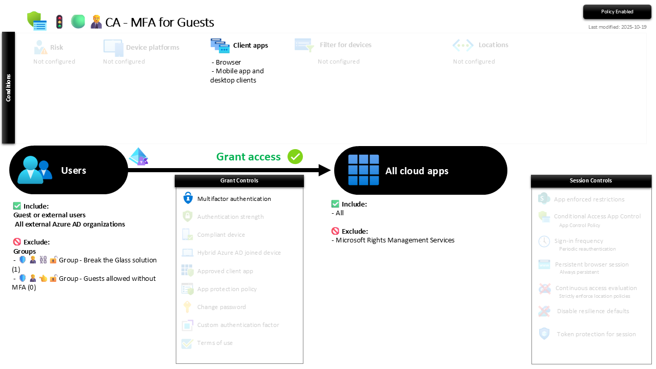 EntraConditionalAccessPolicies🚦🟢👨💼CA - MFA for GuestsOn this page🚦🟢👨💼CA - MFA for Guests What this policy is for Combined with name 🔐 Configuration Overview 📌 Purpose and Impact 🧭 Governance & Security 🧠 Final Note