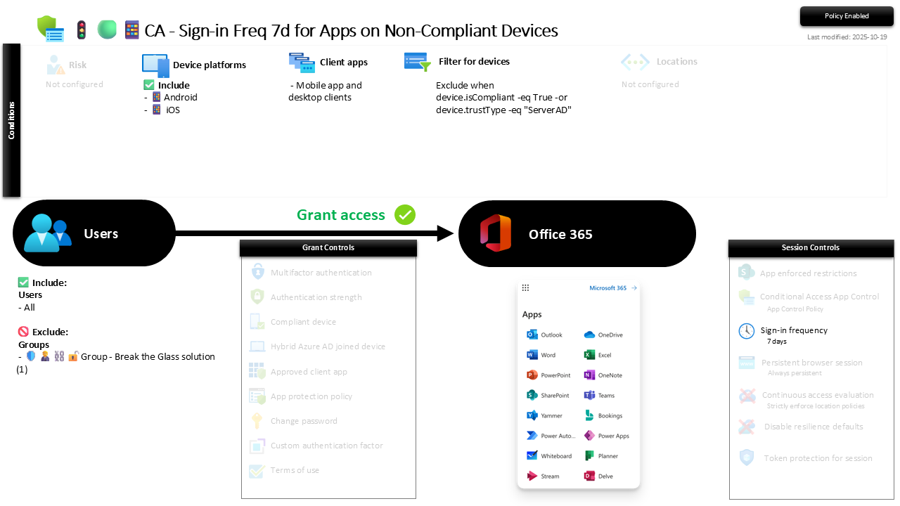 ConditionalAccessPoliciesπ¦π’π±CA - Sign-in Freq 7d for Apps on Non-Compliant DevicesOn this pageπ¦π’π±CA - Sign-in Freq 7d for Apps on Non-Compliant Devices What this policy is forβ π Configuration Overviewβ π Purpose and Impactβ π§ Governance & Securityβ π§ Final Noteβ